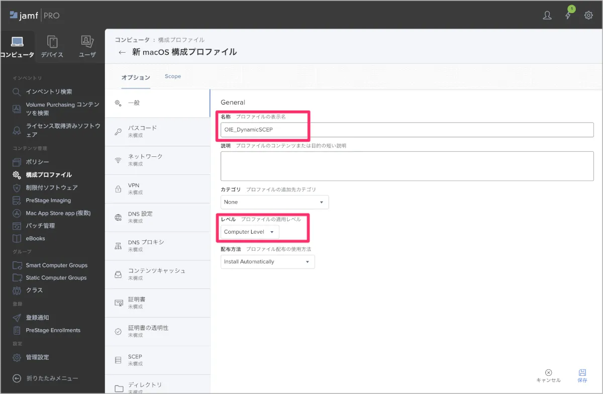 Jamf Pro SCEP設定