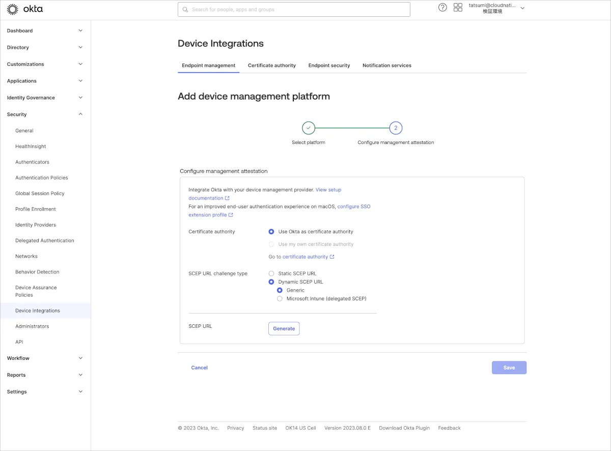 OktaでSCEP URLを生成