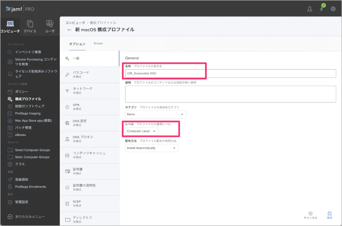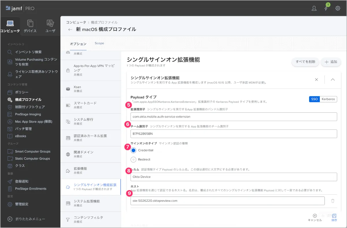 Jamf Pro SSO拡張機能設定