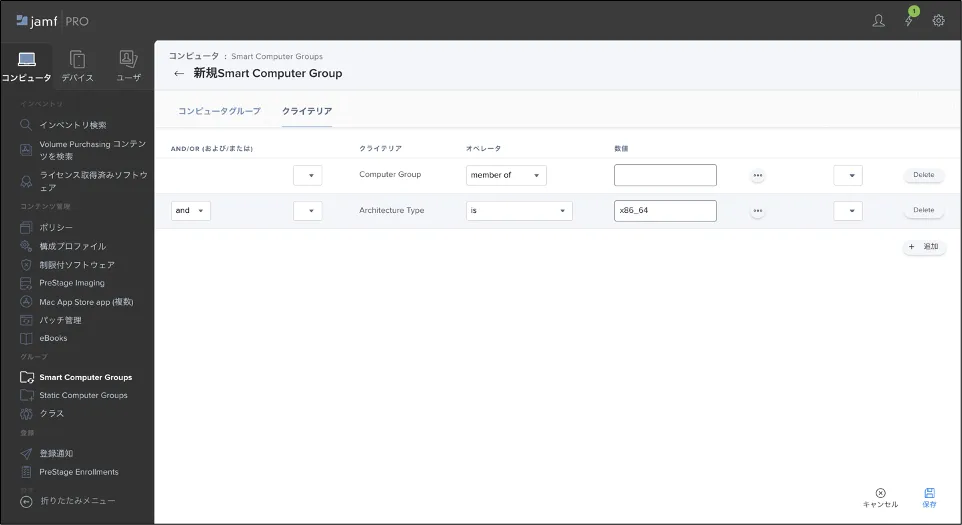 4-b. 左画面より [コンピュータ] タブ > [Smart Computer Groups] より [新規] ボタンをクリックします。