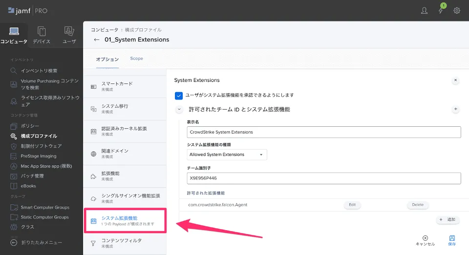 CrowdStrike Allowed System Extension Types - システム拡張の種類: