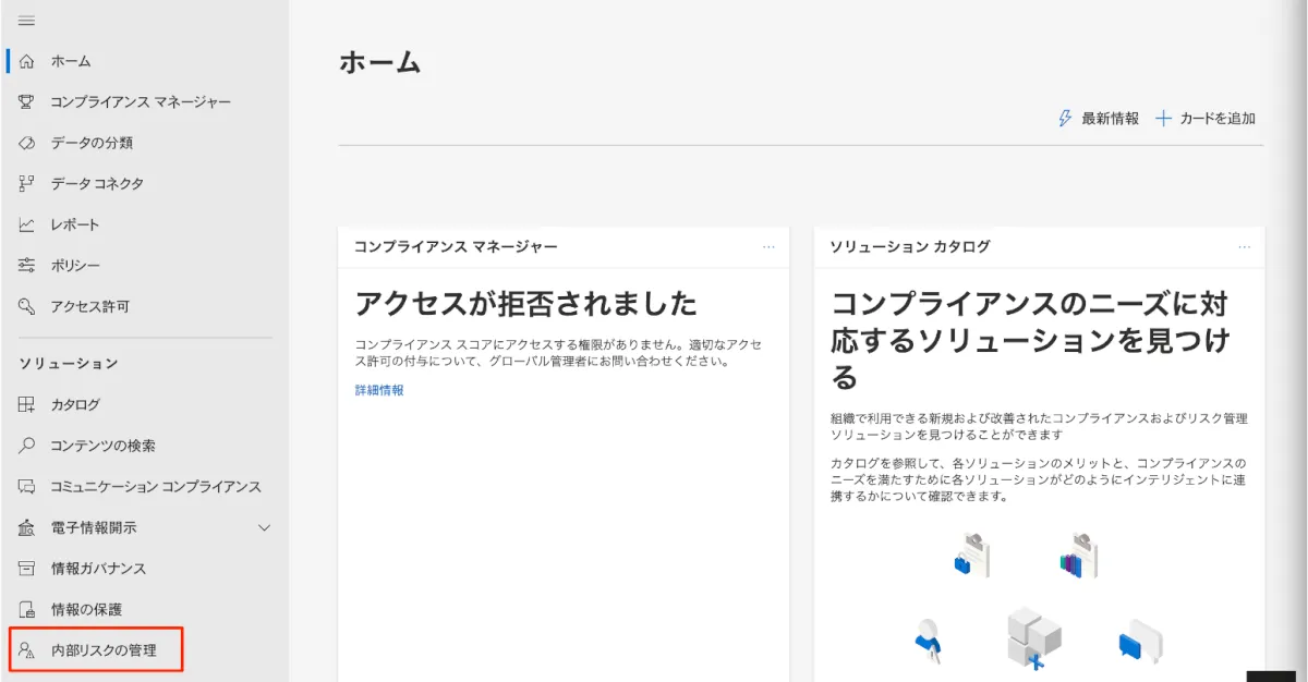 - 画面左にある内部リスクの管理を開きます。