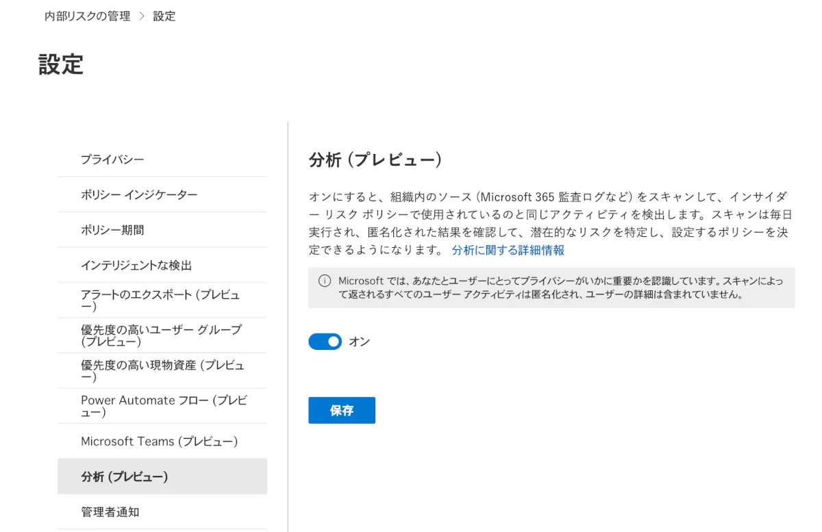 組織内の従業員等の怪しい挙動を検知・対処するための1つとして、このInsider Risk Managementの機能は必要だと考えています。
