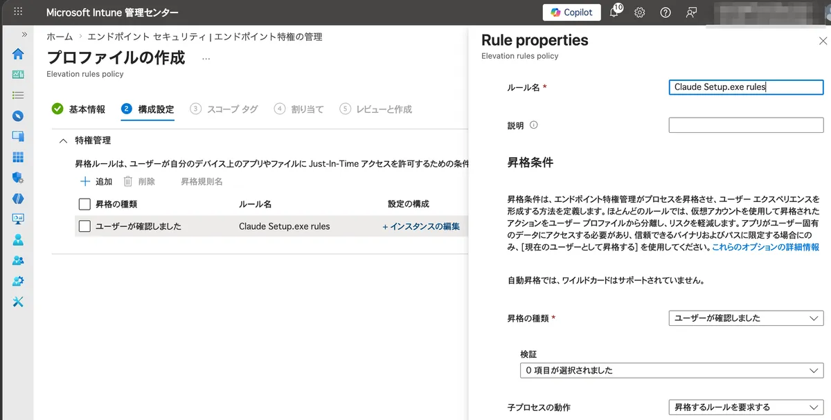 - エンドポイント特権管理を使用した昇格ルールの作成 | Microsoft Learn