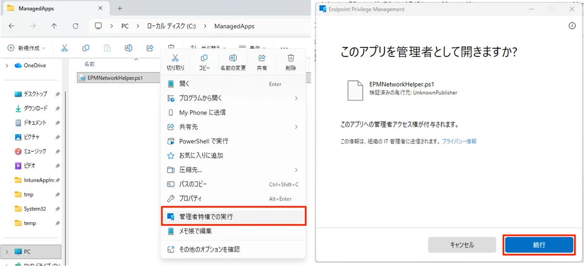 EPMNetworkHelper.ps1) を右クリック > [管理者特権での実行] をクリックします。