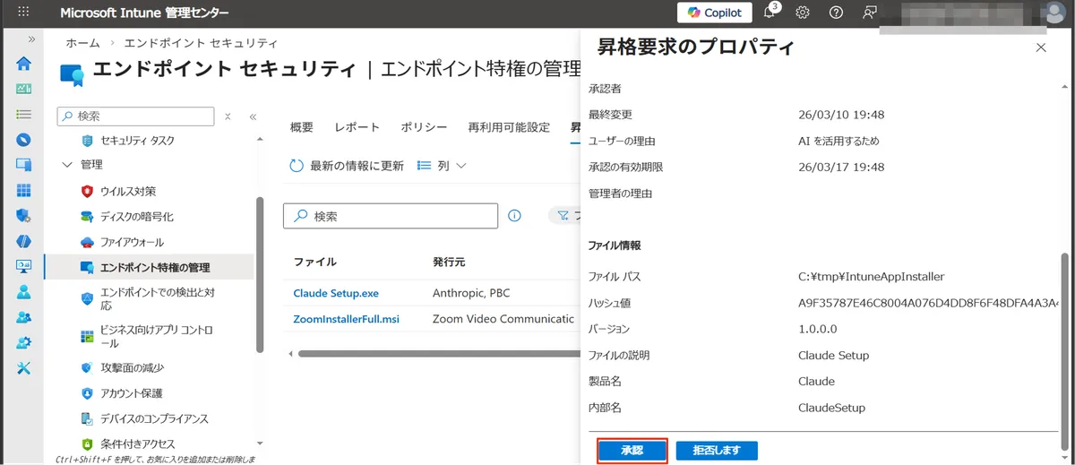 - Intune でのファイル昇格要求に EPM サポート承認を使用する | Microsoft Learn