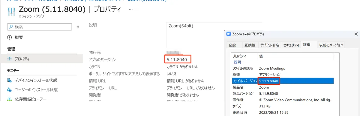 配布対象アプリのファイルバージョンは、以下の手順で確認できます。