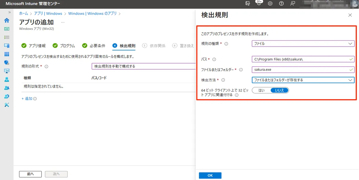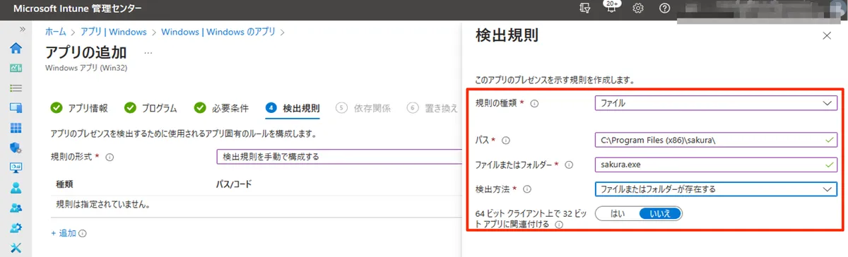 前述のとおり、intunewin では検出規則の評価が最初に行われます。ここの設計を間違えると、置き換え機能を使っていてもアップデートが実行されないというトラブルにつながります。