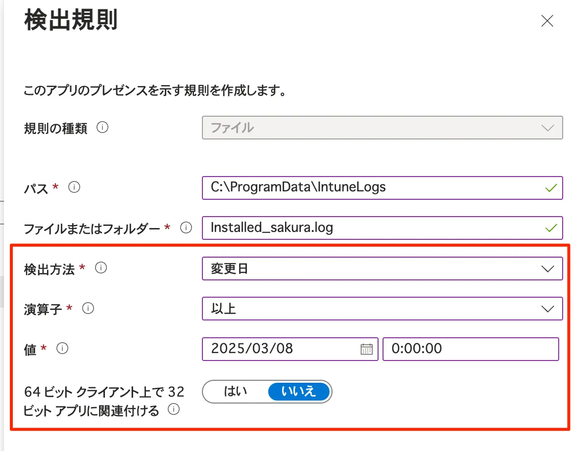 - 実行後、再度検出規則で確認 → インストールされていれば Intune へ正常完了報告