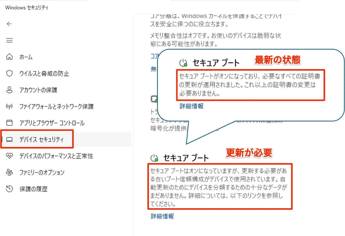 セキュアブートが有効な Windows デバイスでこの証明書が更新されないまま期限を迎えると、新しいブートコンポーネントの署名検証ができなくなり、将来のセキュリティ更新プログラムの適用やブートの保護に影響が出る可能性があります。