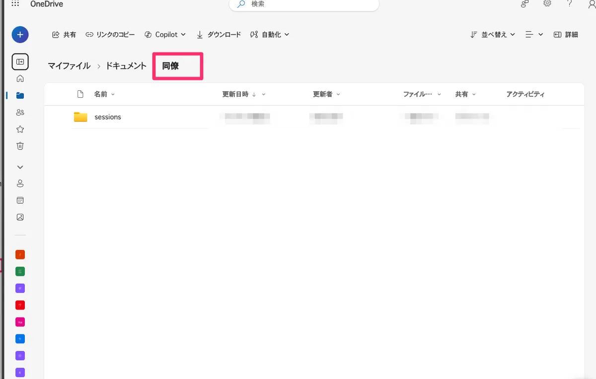 さて、作成された資料はOneDrive上に保存されるのですが、保存先フォルダ名が「同僚」