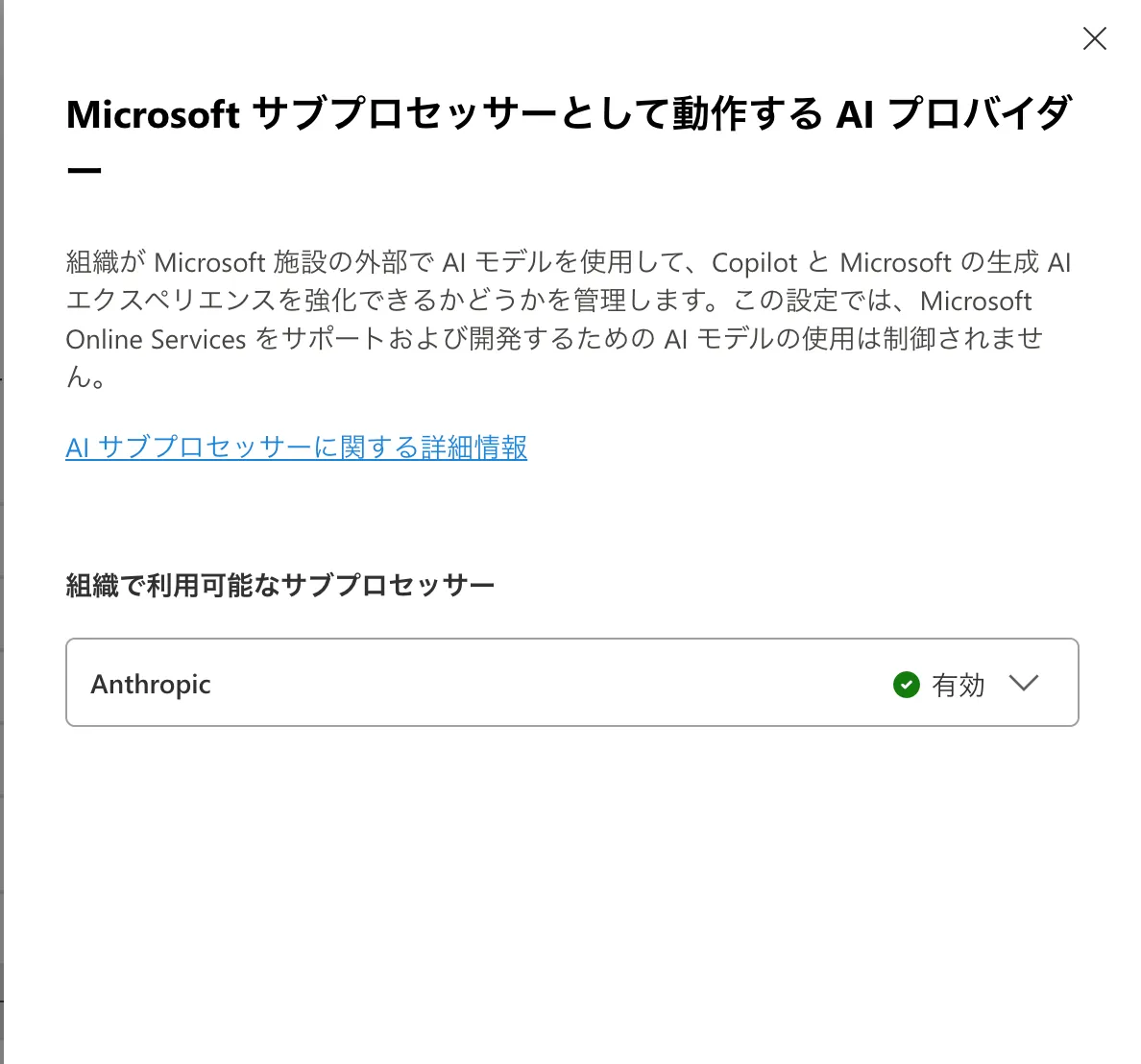 - Anthropic社を「Microsoft サブプロセッサーとして動作する AI プロバイダー」に追加