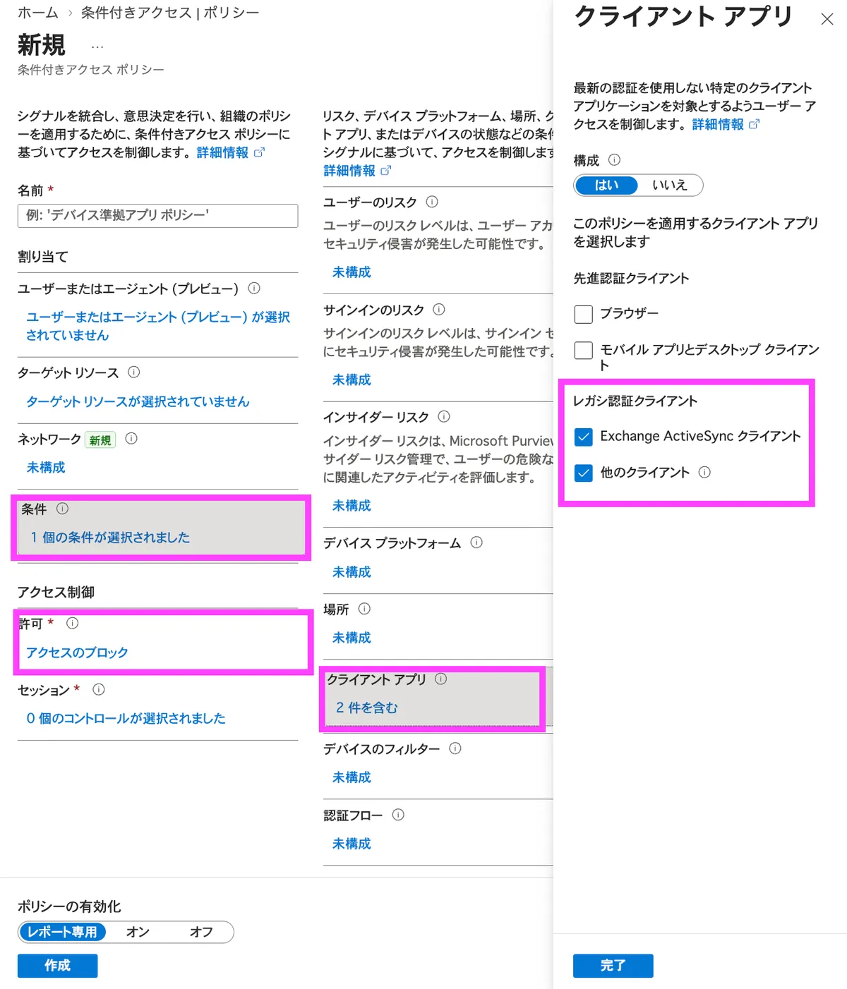 Entra ID の条件付きアクセスでは、レガシー認証のブロックは基本方針の1つです。IMAP / POP3 / SMTP / Exchange ActiveSync といった古いプロトコルは MFA をバイパスできてしまうため、条件付きアクセスポリシーでブロックすることが推奨されています。