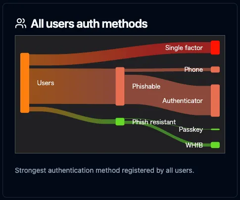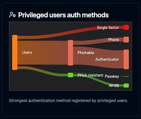 特権ユーザーの認証メソッドの中で、危険なものがどの程度ありそうかが一目でわかります。