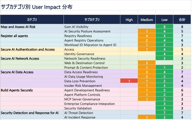 | Secure AI Data Access / Data Loss Prevention | Configure DLP Policies for M365 Copilot and Agent 365 Locations | CopilotやAgent 365専用のDLP(データ損失防止)ポリシーを作成する。例:「極秘」ラベルの付いた文書をCopilotが回答に含めないようブロックする。Copilotは複数ソースの内容を1つの回答に合成できるため、通常のDLPとは別にAI専用ポリシーが必要 | Medium / High |