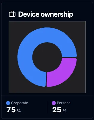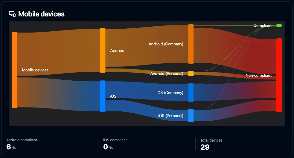 Mobile device(Android, iOS)の会社管理・個人管理の分布とコンプライアンスの準拠状況が可視化されています。