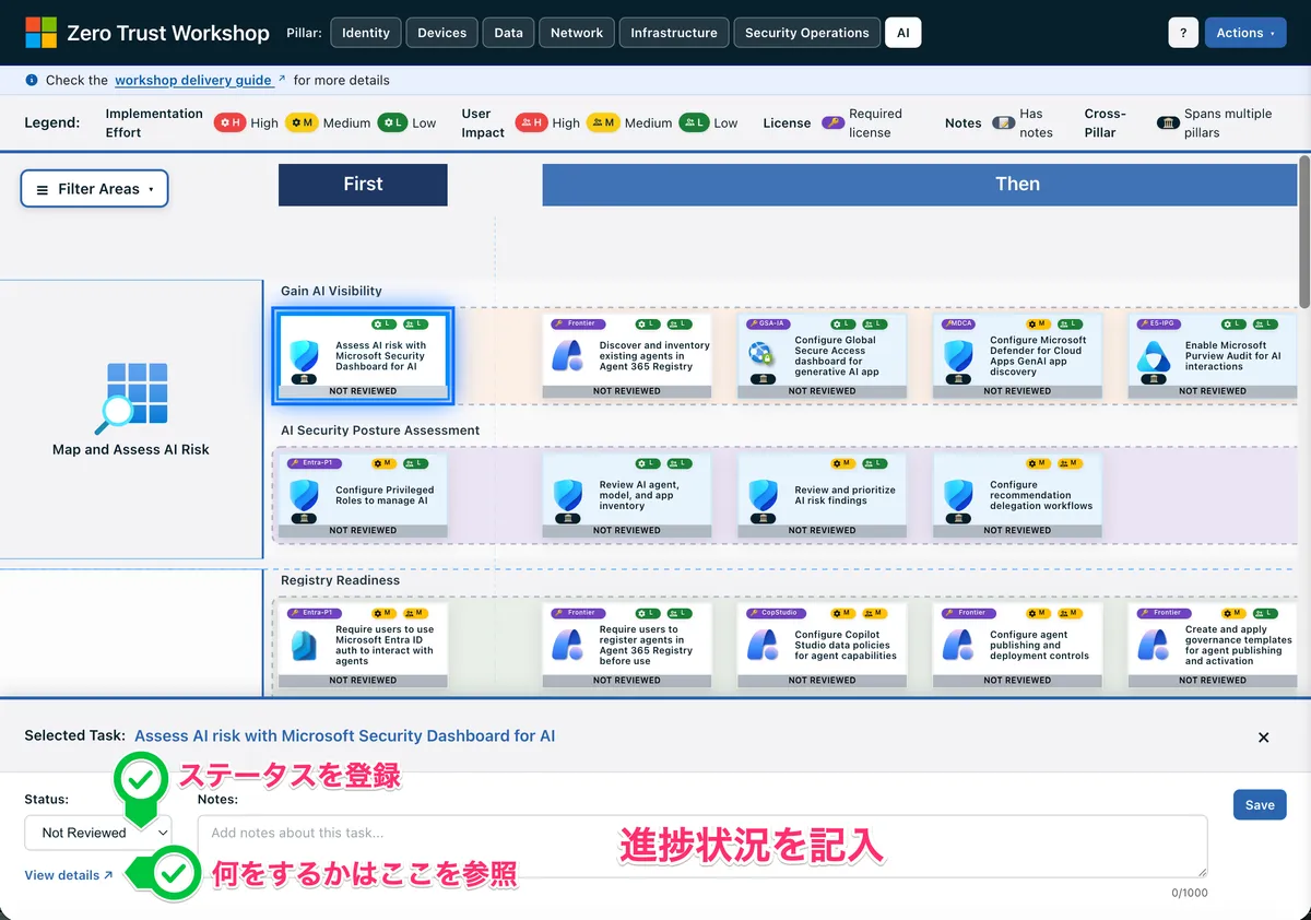 その中で主軸となる「ゼロトラストワークショップ」と今回追加された「AIの柱」の位置づけや使い方と、Zero Trust Assessment Toolで得られる情報の見方について一筆書きます。